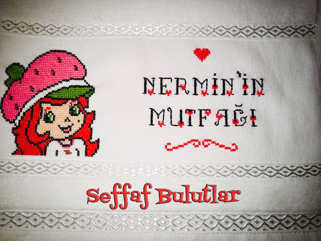 Bugün yine Çilek Kız var havlumuzda.Nermin Hanım kırmızı konseptli mutfağı için Çilek Kız desenini kendisi seçti ve çoook da güzel oldu :) Mutfağından güzel yemekler mis kokular yayılırken hep beni hatırlasın :) İyi ve sağlıklı günlerde kullanması dileğimle...